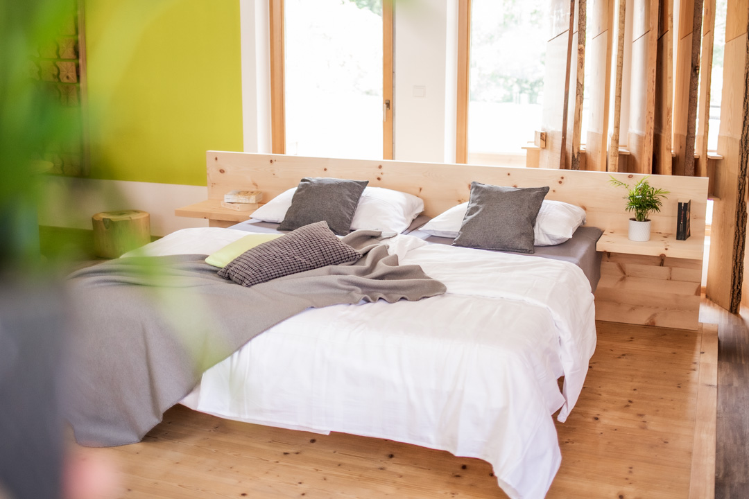 Das Modell Marmolada überzeugt mit seiner schwebenden Optik und ist damit der Mittelpunkt eines jeden Schlafzimmers. Das Bett muss an einer Raumwand befestigt werden. Das verwendete Holz wird in rohem Zustand geschliffen um ihm die einzigartige Optik zu verleihen. Die Nachttische sind direkt an die Rückwand angebaut. Das perfekt Bett um Ihr Schlafzimmer in eine natürliche Oase der Ruhe zu verwandeln.